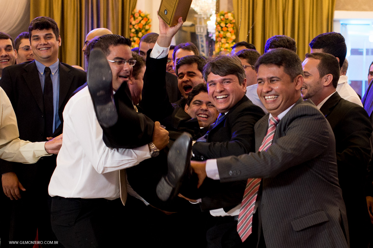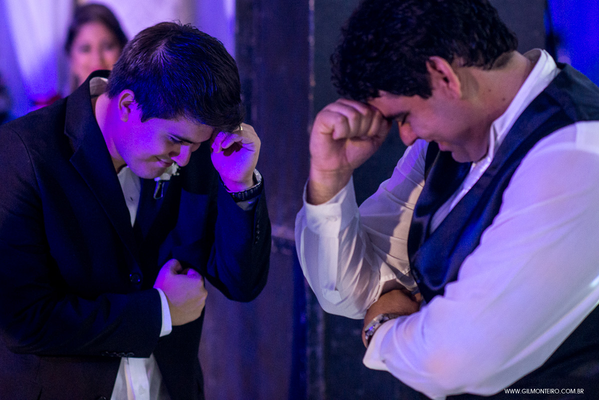 binde do pai do noivo com o noivo no dia do casamento